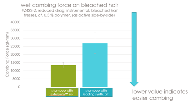 Additionally, texturpure™ sa-1 enables a highly conditioned sensorial experience in both silicone-based and silicone-free as it doesn’t interfere with these conditioning and oil deposition technologies, often resulting in superior conditioning vs. synthetic rheology modifier - stabilizing agents.