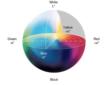 The CIE-Lab color difference equation calculates coordinates to locate a point in the in the three-dimensional sphere model. The coordinates are for the L*, a* and b* axis. L* is a measure of lightness to darkness. a* is the red to green axis and b* is yellow to blue. Color differences are calculated from these coordinates and represent the distance between the target and trial along each axis.