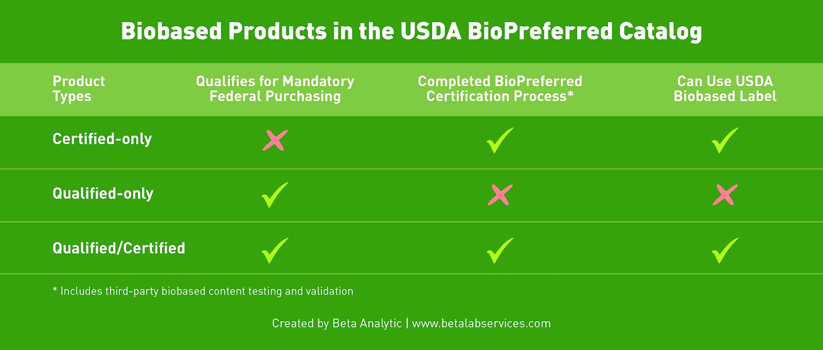 Disclaimer: Beta is not affiliated with the BioPreferred program but is an approved laboratory.