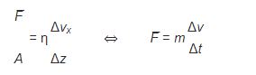Where viscosity is represented by the symbol η “eta”. The more usual form of this relationship, called Newton’s equation, states that the resulting shear of a fluid is directly proportional to the force applied and inversely proportional to its viscosity. The similarity to Newton’s second law of motion (F = ma) should be apparent.
